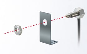 Um sehr kleine Objekte erkennen zu können, empfehlen wir einen Lichtleiter als Lichtschrankenmodell mit enger optischer Achse oder sogar eine zusätzliche Schlitzblende. Die Erkennung wird hierdurch stabilisiert, während gleichzeitig noch ein ausreichend großer Bereich zur Erkennung der Objekte zur Verfügung steht.