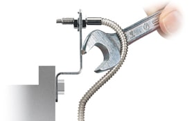 Ein biegsamer Edelstahlmantel schützt den Lichtleiter vor Verschleiß.