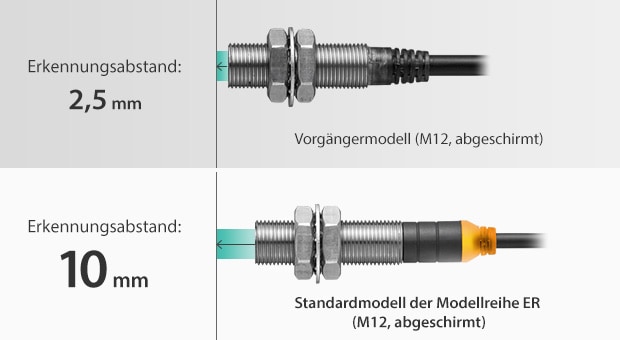 Die Modellreihe ER bietet dank verschiedener Modelle und Ausführungsvarianten eine maximale Flexibilität und Erkennungsstabilität, ohne Kompromisse beim Design der Maschine oder der Auslegung der Anwendung machen zu müssen. Die großen Erkennungsabstände tragen dazu bei, die Gefahr vor mechanischen Beschädigungen zu reduzieren. Zusätzlich ermöglicht der große Erkennungsabstand eine zuverlässige Erkennung der Objekte auch bei Spiel und Vibration. Für anspruchsvolle Einsatzbedingungen bieten die zusätzlich verfügbaren Vollmetallsensoren einen noch größeren Schutz und erfüllen die Schutzarten IP68(G)/IP69K, ohne Kompromisse beim Erkennungsabstand machen zu müssen. Für jede Anwendung ist das passende Modell vorhanden: kompakt, robust oder flexibel.