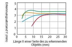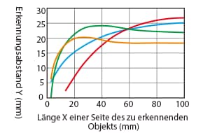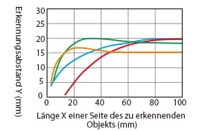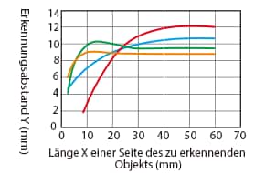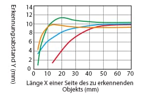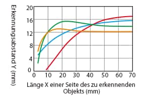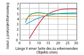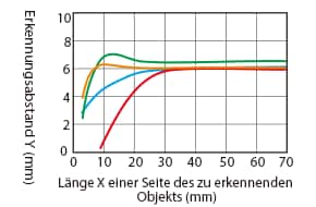 Änderung des Erkennungsabstands je nach Größe und Material des zu erkennenden Objekts (Standardbeispiel)