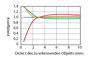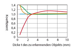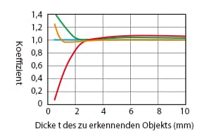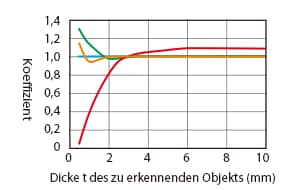 Einfluss der Materialstärke des zu erkennenden Objekts (Standardbeispiel)