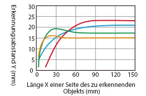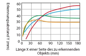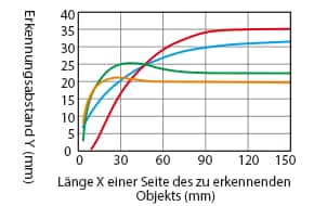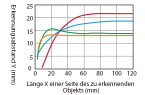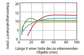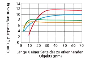 Änderung des Erkennungsabstands je nach Größe und Material des zu erkennenden Objekts (Standardbeispiel)