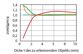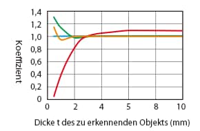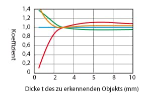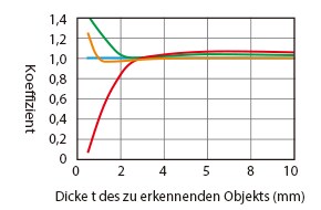 Einfluss der Materialstärke des zu erkennenden Objekts (Standardbeispiel)