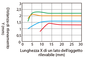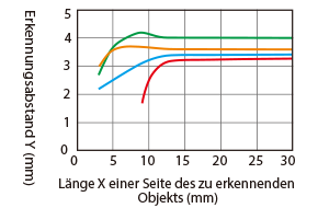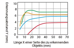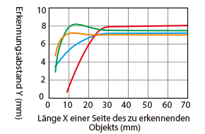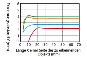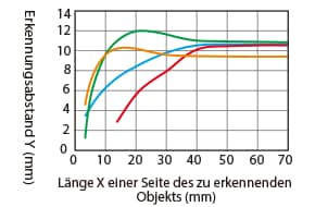 Änderung des Erkennungsabstands je nach Größe und Material des zu erkennenden Objekts (Standardbeispiel)