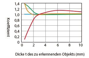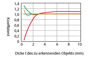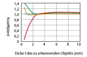 Einfluss der Materialstärke des zu erkennenden Objekts (Standardbeispiel)