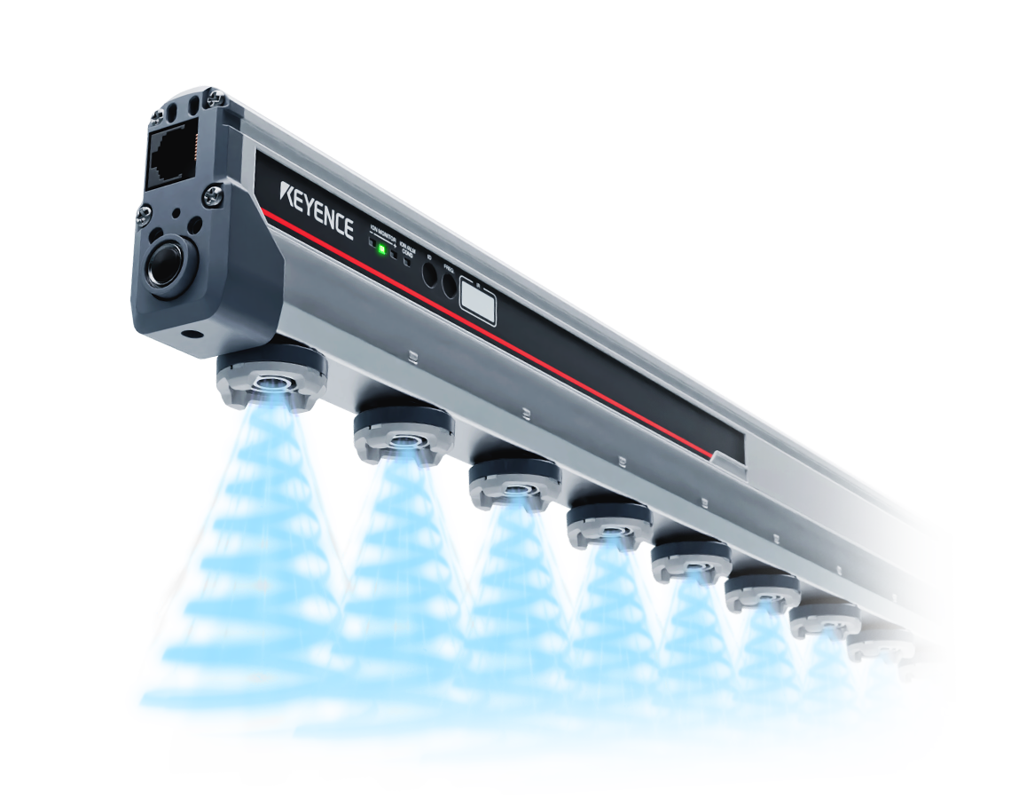 Durch den speziellen Aufbau der Elektroden und der Verwendung von Lavaldüsen hat KEYENCE die Geschwindigkeit der Ionen so weit erhöht, dass eine sehr schnelle Entladungsgeschwindigkeit und eine sehr gute Ionenbalance erreicht wird.