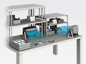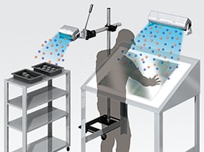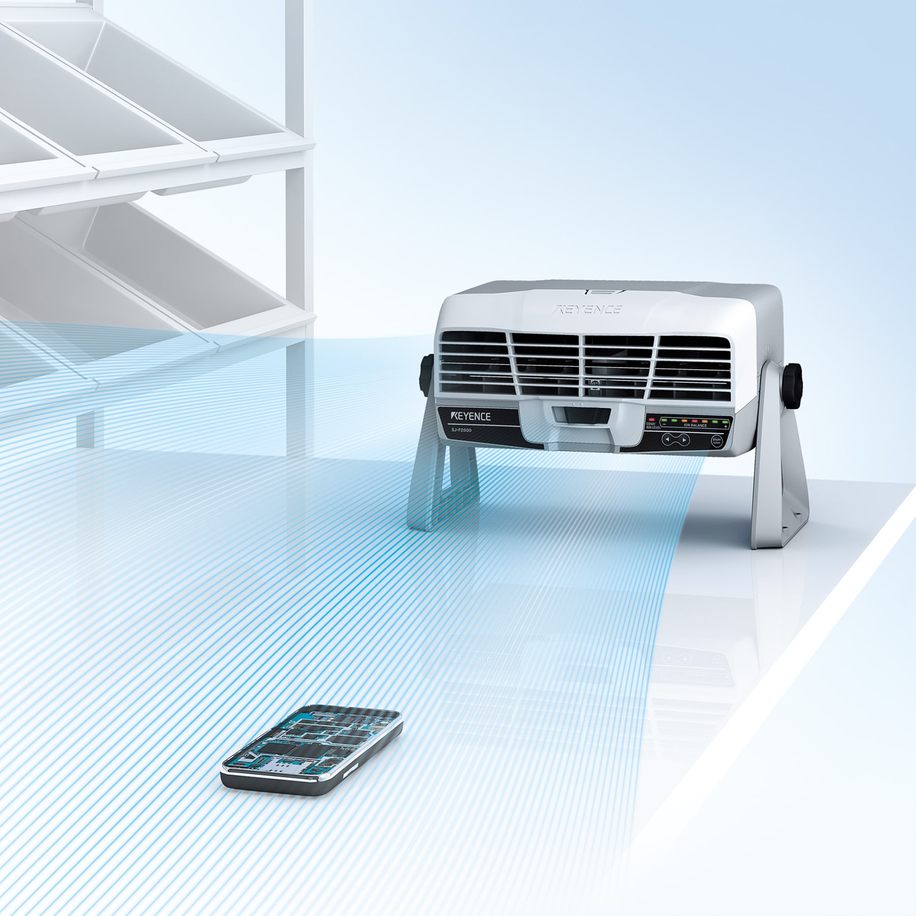 Elektrostatische Entladungsgebläse der Modellreihe SJ-F2000/5000 werden besonders bei breiten Entladungsbereichen eingesetzt. Die besonders schnelle Entladungsleistung und das hochpräzise Ionengleichgewicht unterstützen zusammen mit dem breiten Luftstrom eine optimale Entladung für große Bauteile. Erzeugte Ionen werden passend zur elektrostatischen Aufladung des Bauteils in den Entladungsbereich zugeführt, um eine maximal effektive Entladung einzuleiten. Die elektrostatischen Entladungsgebläse der Modellreihe SJ-F2000/5000 bieten eine hohe Leistung und ausgezeichnete Benutzerfreundlichkeit in Form eines wartungsfreundlichen Gehäuses und einem präventiven Verschleiß- & Schmutzablagerungsschutz der Elektrode.