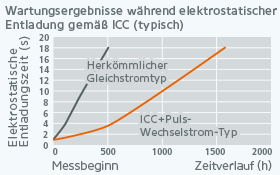 Das von KEYENCE entwickelte I.C.C.-Verfahren wurde integriert, um die Beeinträchtigung der Geschwindigkeit der elektrostatischen Entladung aufgrund von verschlissenen oder verschmutzten Sonden zu verringern. Außerdem wird dadurch eine sehr lange Betriebsdauer bei vergleichsweise geringem Wartungsaufwand gewährleistet.