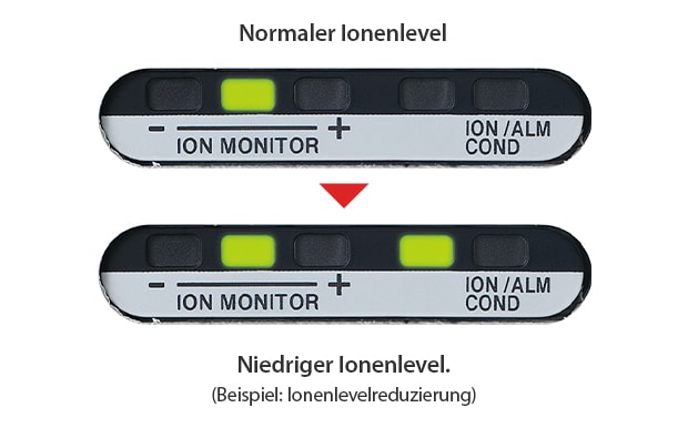 Überwacht eine Abnahme des Ionenerzeugungslevels aufgrund von Verschmutzung oder Verschleiß der Elektrode.