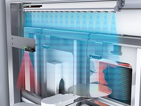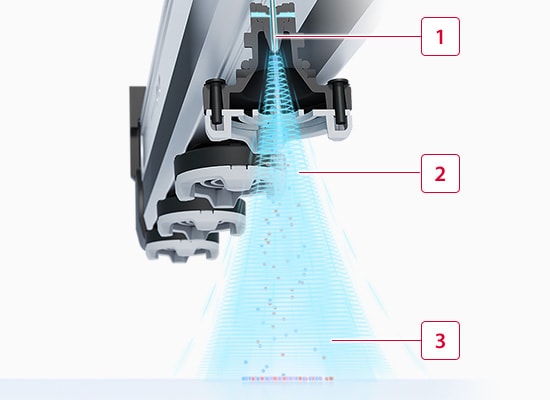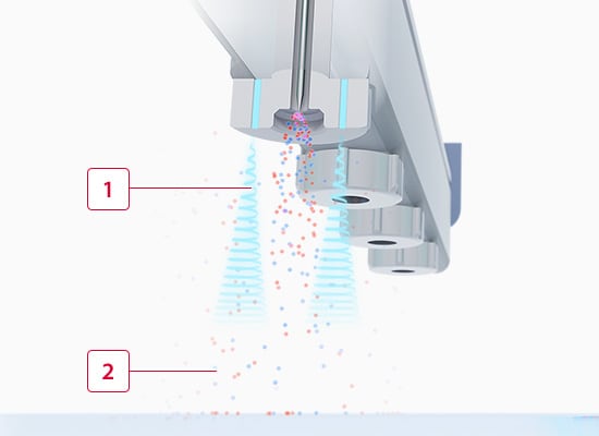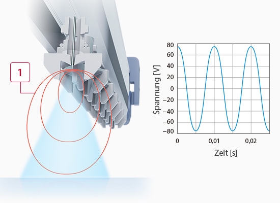Das Ergebnis ist ein zehnfach besseres Ionengleichgewicht als bei Vorgängermodellen. Dies ermöglicht eine äußerst präzise elektrostatische Entladung. Somit werden Schäden durch elektrostatische Entladung minimiert und das Risiko von Fremdkontaminationen auf ein Minimum reduziert.