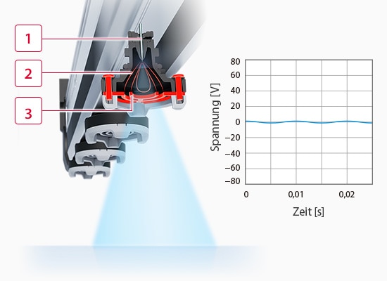 Der Einfluss des elektrischen Felds an der Elektrode wird nahezu eliminiert, wodurch Spannungsschwankungen minimiert werden.