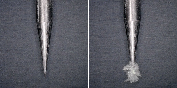 Auch bei verschmutzten Elektroden wird eine gleichbleibende elektrostatische Entladung gewährleistet. Die Elektrode wird koaxial mit einem Überschallluftstrom umhüllt, der den in der Außenluft enthaltenen Schmutz abweist.