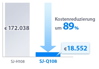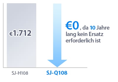 * Jahresstromrechnung bei 0,26 €/kWh. Vergleich von Simulationen bei der Versorgung des SJ-Q108 mit 0,5 MPa CDA über 10 Jahre und des Vorgängermodells SJ-H108 mit 0,5 MPa CDA über 10 Jahre.