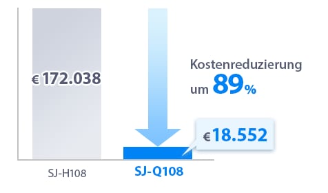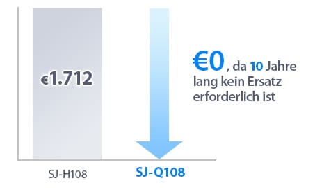 * Jahresstromrechnung bei 0,26 €/kWh. Vergleich von Simulationen bei der Versorgung des SJ-Q108 mit 0,5 MPa CDA über 10 Jahre und des Vorgängermodells SJ-H108 mit 0,5 MPa CDA über 10 Jahre.