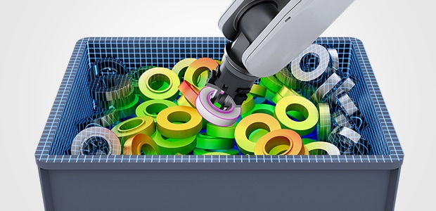 Die neu entwickelte 3D-Suche verwendet vier separate Kameras zum Erstellen eines 3D-Bildes, um optimale Erfassungsergebnisse ohne Totzonen zu erzielen. Dadurch werden Werkstücke, unabhängig von Position oder Ausrichtung, stabil erkannt.