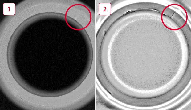 Beschädigte Flaschenmünder können zu Kontaminationen führen und die Produktqualität beeinträchtigen. Mithilfe hochauflösender Kameras werden detaillierte Bilder der Flaschenmünder erfasst, sodass Absplitterungen oder andere Defekte präzise erkannt werden können.