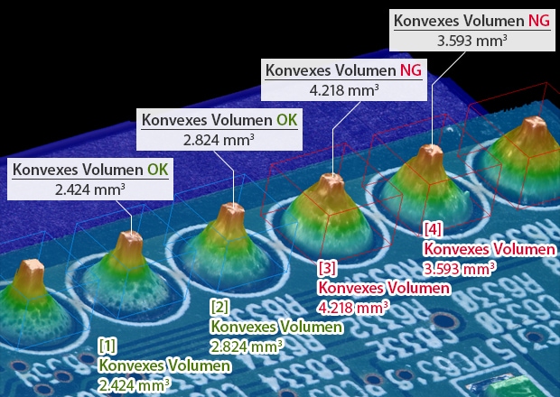 Die Modellreihe XG-X/CV-X unterstützt hochauflösende Kameras bis zu 64 Megapixeln. Sie ermöglicht eine hochpräzise Prüfung auf Fehlausrichtungen beim Drahtbonden sowie auf abgelöste oder gebrochene Drähte.