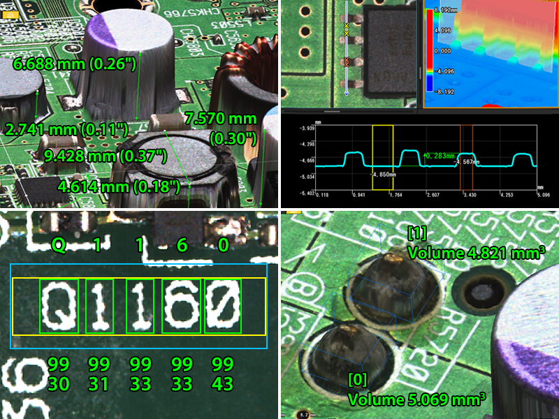 Mit der Verfügbarkeit von hochauflösenden Kameras und leistungsfähigen Bildverarbeitungssystemen können nun verschiedene Operationen automatisiert werden, wie z. B. die Prüfung von Qualitätsmerkmalen, Dimensionsprüfungen, Zeichen-/2D-Code-basierte Erkennung sowie die Positionierung/Ausrichtung. Der Einsatz von Bildverarbeitungssystemen erleichtert auch das Datenmanagement. Der Aufbau einer Produktmanagement-Datenbank und die Durchführung einer Faktorenanalyse auf Basis von Daten bereits geprüfter fehlerhafter Produkte tragen zur Verbesserung der Anlagen und der Produktqualität bei. Im Folgenden finden Sie typische Beispiele für die Einführung von Bildverarbeitungssystemen in der Elektronikindustrie.
