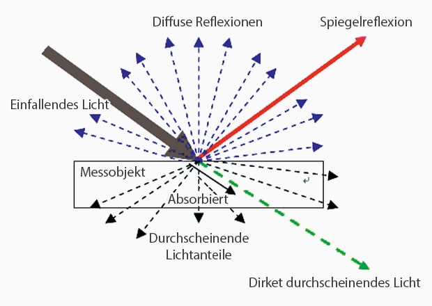 Das Licht wird auf das Prüfobjekt gerichtet und das Objektiv empfängt die direkte Reflexion. -