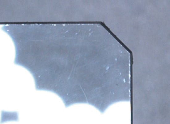 2Durch die Verwendung von Durchlicht können die Kanten des Prüfobjekts ohne Beeinflussung durch Erhebungen und Vertiefungen erkannt werden.