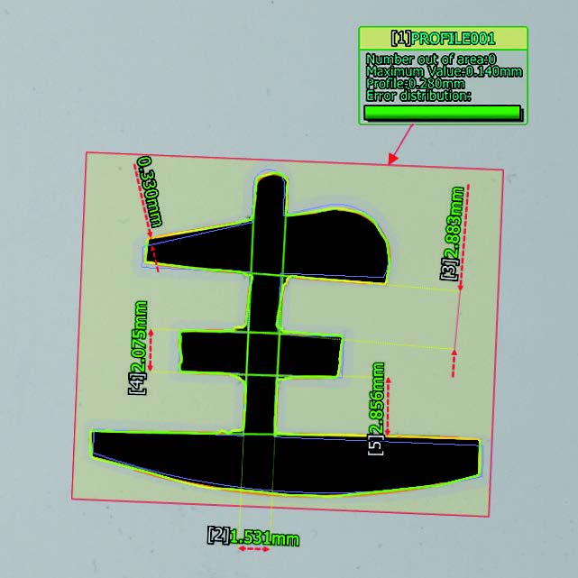 Messungen zur Profiltoleranz lassen sich einfach durchführen, indem man Vergleiche mit CAD-Zeichnungen oder einem Musterobjekt vornimmt.