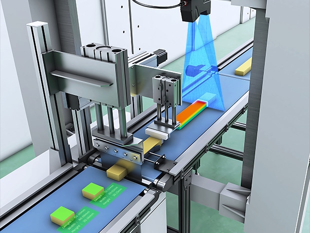 Das System misst Länge, Breite und Querschnittsfläche von Käse und übermittelt die Daten anschließend an das Sortiergerät. Das Schneiden der Produkte in gleiche Portionen trägt dazu bei, die Ausbringung zu verbessern und Kundenbeschwerden zu vermeiden.