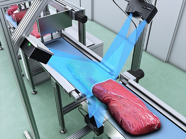 Durch die richtige Positionierung können die Filets in der vorgegebenen Größe geschnitten werden. Die Übermittlung von Länge, Breite, Volumen und andere aus dem Profil erhaltenen Informationen an die Filetiergeräte stellt sicher, dass die Filets unabhängig von ihrer Form in einheitliche Stücke geschnitten werden.