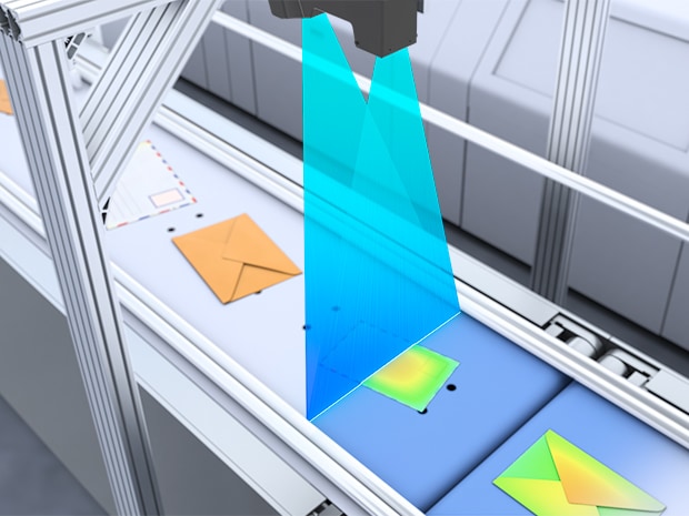 Die Modellreihe LJ-X8000 kann auch zum Sortieren von Post verwendet werden. Dank der schnellen Abtastfrequenz von bis zu 16 kHz ist eine stabile Maßhaltigkeitsprüfung auch bei hohen Sortiergeschwindigkeiten möglich, was zur Automatisierung von Prozessen beiträgt.