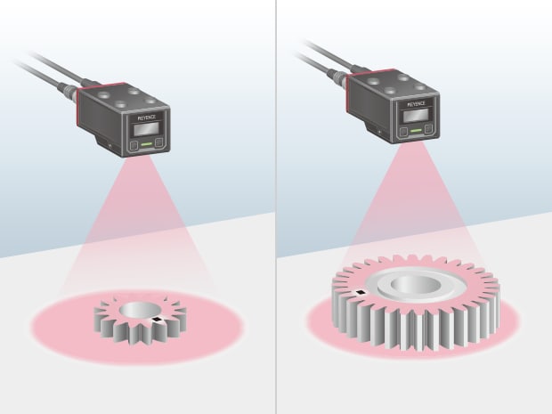 Bislang musste der Codeleser neu positioniert werden, wenn Bauteile unterschiedlichen Durchmessers und variierender Codeposition auf derselben Fertigungslinie produziert wurden. Dank des sehr großen Sichtfelds des Codelesers SR-2000 können Codes in einem großen Bereich gelesen werden, ohne die Position des Geräts verändern zu müssen. Der Arbeitsaufwand reduziert sich deutlich durch die wegfallende Umrüstung.