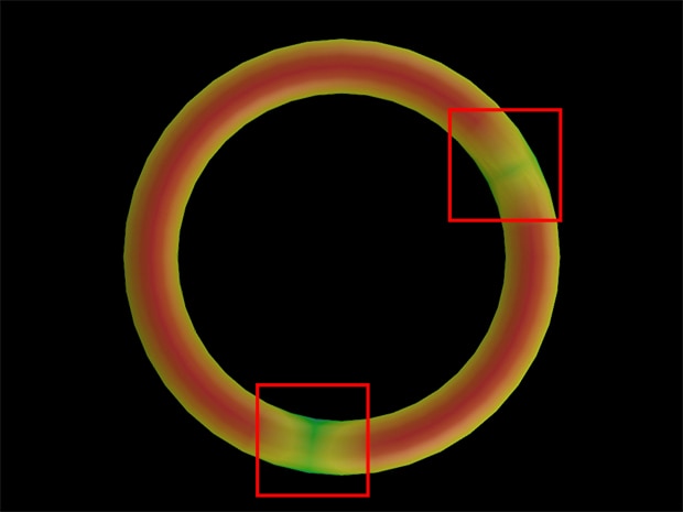 Die Überprüfung von O-Ringen mit minimalen Farbabweichungen mithilfe von herkömmlichen Kameras war bisher ungenau. Die Modellreihe LJ-S8000 kann 3D-Daten abrufen, um Defekte auf Basis von Höhenunterschieden statt der Farbe zu erkennen. So wird der Versand fehlerhafter Produkte verhindert.