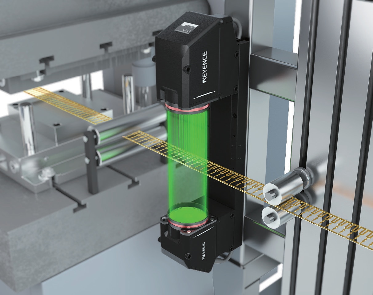 Mit der Modellreihe TM-X5000 können die Abmessungen von Klemmenstiften unmittelbar nach dem Schneiden geprüft werden. Fehler beim Pressen werden gleich nach ihrem Auftreten erkannt, was zu höheren Produktionszahlen führt. Auch wenn die Modellreihe TM-X Messungen in Hochgeschwindigkeit durchführt, handelt es sich um ein kalibriertes Messinstrument, so dass vollständige Prüfungen und Messwerte garantiert werden können.