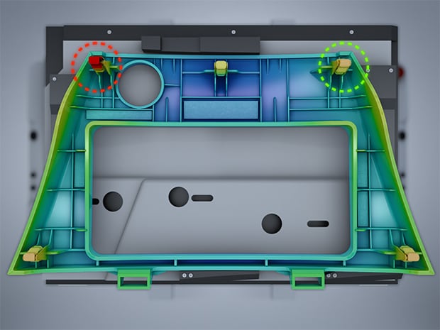 Obwohl die Erkennung von Veränderungen in der Werkstückfarbe oder von Bauteilen mit ähnlicher Farbe mitunter instabil sein kann, können die Geräte der Modellreihe LJ-S8000 mithilfe von 3D-Daten prüfen, ob Einbaufehler vorliegen.