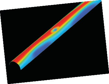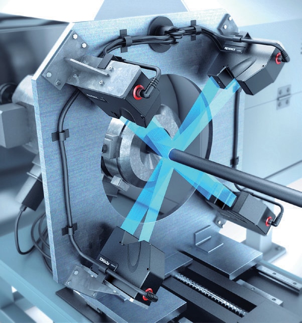 Vertiefungen lassen sich nicht ohne Weiteres durch Vermessen des Außendurchmessers mit einem Lichtbandmikrometer erfassen. Mithilfe eines 2D/3D Laser-Profilsensors ist es möglich, Deformationen an Kabelummantelungen zu erkennen. Dank der hohen Abtastrate der Modellreihe LJ-X mit 64.000 Aufnahmen pro Sekunde kann die Rauheit zuverlässig erfasst werden.