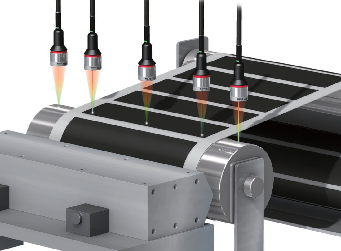 Die Dicke kann genau gemessen werden, indem der Höhenunterschied zwischen der Beschichtung und der Rolle bestimmt wird. Die gleichzeitige Durchführung der einzelnen Messungen, wie hier bei der Modellreihe CL, ist entscheidend, um Fehler durch Exzentrizität oder thermische Ausdehnung der Rolle auszuschließen. Das einzigartige Design dieser Messköpfe ermöglicht es ihnen, sowohl raue als auch glänzende Oberflächen genau zu messen und bietet dadurch eine stabile Messung der intermittierenden Schichtdicke.