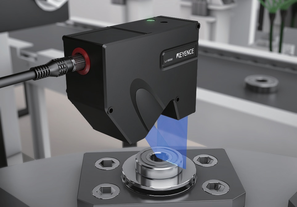 Die Ablösung von Dichtlippen ist ein häufig auftretendes Problem, für dessen Prüfung die Modellreihe LJ-X8000 eingesetzt wird. Da nicht absehbar ist, an welcher Stelle die Ablösung auftritt, muss der gesamte Umfang geprüft und daher das Lager gedreht werden. Aufgrund der zunehmenden Miniaturisierung der Lager bei gleichzeitig steigenden Produktionszahlen ergibt sich die Forderung nach verbesserten Prüfmethoden einerseits und einem größeren Funktionsumfang der Prüfinstrumente andererseits. Die Modellreihe LJ-X8000 kann hochauflösende Messungen mit bis zu 3200 Punkten je Profil durchführen und erreicht eine Prüfgeschwindigkeit von bis zu 64.000 Profilen in der Sekunde. Zudem können mit den vielfältigen Mess- und Prüfwerkzeugen gleichzeitig eine Vielzahl von Inspektionen durchgeführt werden, wie z. B. Messungen der Gesamthöhe und Form der Dichtung und des Rundlaufs der Innen- und Außenringe.