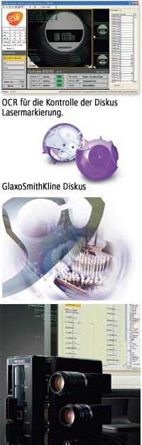 Das hohe Produktionsvolumen bedingt ein hoch komplexes System zur Rückverfolgung. Ein Beispiel: Eines der Inhalierprodukte, die GSK in Evreux herstellt, ist der „Diskus“. Dieses Pulverinhaliergerät liefert jeweils mehrere genau abgemessene Dosen des Medikamentes. Die Beschriftung jedes Diskus‘ wird von einem XG-Bildverarbeitungssystem mit drei Kameras überprüft. Die erste Kamera nutzt OCR, um einen firmeneigenen Code zu prüfen, der mit einem YAG-Laser eingraviert ist. Die zweite Kamera prüft die Platzierung und den Durchmesser der Aufschrift. Sie inspiziert auch nach Rissen und stellt sicher, dass die aufgedruckten gesetzlichen Hinweise deutlich lesbar sind. Die Aufschrift wird auf einen weißen Untergrund mit einer Geschwindigkeit von 110 bis 150 Aufdrucken pro Minute aufgebracht. Die dritte Kamera wird verwendet, um einen speziellen Aufdruck mit schwarzem Hintergrund zu prüfen, der für den japanischen Markt benötigt wird.