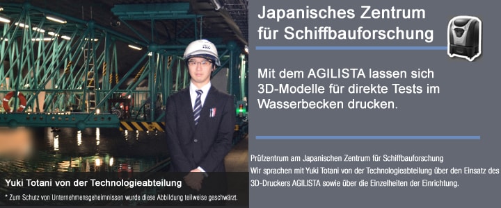 Wir wollten ja Modelle für Tests im Wasserbecken anfertigen, also war ein Kriterium, dass die gedruckten Bauteile im Wasser verwendbar sind. Nachdem wir den Applikations-Ingenieuren der Hersteller der 3D-Drucker unsere Anwendung nahelegten, bekamen wir meist zur Antwort: “Es tut uns leid, wenn Sie das Modell ins Wasser legen, wird es sich verformen.” Nur bei KEYENCE bekamen wir die gesuchte positive Antwort! Der AGILISTA erfüllt unsere Anforderungen, denn die mit diesem Gerät gedruckten Objekte können im Wasser benutzt werden. Zudem ist der AGILISTA ja so konzipiert, dass das Supportmaterial durch Einweichen der Modelle in Wasser entfernt wird.