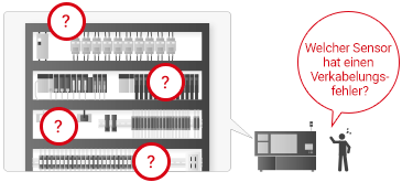 Wenn ein Fehler auftritt, kann leicht herausgefunden werden, welches Teil (oder welcher Sensor) betroffen ist. Das Teil kann sofort identifiziert und Details des Fehlers angezeigt werden. Wartungsarbeiten kommen somit schnell zu ihrem Abschluss.