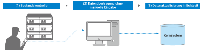 - Die mit dem mobilen Computer gelesenen Daten werden unverändert an das System gesendet, sodass kein Raum für Fehler wie Auslassungen und Tippfehler bleibt.