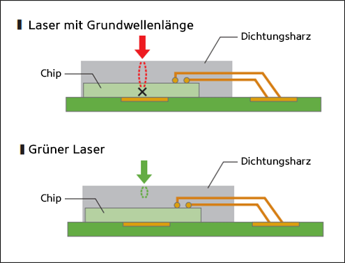 Auf den Grad der Verfärbung nehmen verschiedene Faktoren Einfluss, wie beispielsweise die Beschaffenheit des Kunststoffteils. Hybrid-Beschriftungslaser, die sogar bei einer Wellenlänge von 1064 nm eine hohe Spitzenleistung erreichen können, sind hierfür optimal. Mit UV-Lasern und ihrer „kalten Beschriftung“, welche durch eine hohe Absorptionsrate entsteht, ist es möglich, Kunststoffe nahezu beschädigungsfrei zu beschriften. CO₂-Beschriftungslaser verfärben Kunststoffoberflächen normalerweise nicht, sondern gravieren diese lediglich.
