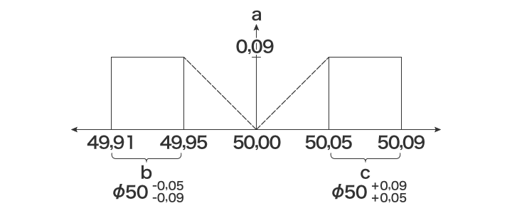 Diese Spezifikation stellt sicher, beispielweise bei einer Welle, die so konstruiert ist, dass sie in eine Bohrung passt, dass die Welle unter der Maximum-Material-Bedingung (MMC) auch wirklich in die Bohrung passt. Sie verhindert gleichzeitig, dass eine zu enge Maßtoleranz angewendet wird, um zu vermeiden, dass die Welle eventuell nicht in die Bohrung passt.