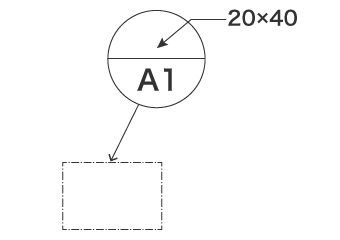 Ein Bezugspunktziel wird durch einen kreisförmigen Rahmen mit einer durch die Mitte gezogenen horizontalen Linie beschrieben (Bezugspunktzielrahmen). In die untere Hälfte des Bezugspunktzielrahmens schreiben Sie den Buchstaben/das Symbol, das den gleichen Bezugspunkt wie das gesamte Merkmal angibt, zusammen mit der Nummer des Bezugspunktziels.