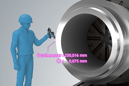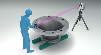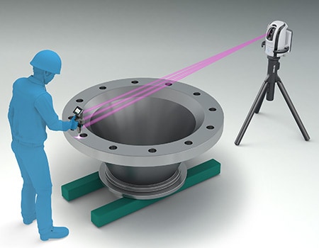 Es ist schwierig, große Ventile zur Überbrückung von 3D-Koordinatenmessgeräten zu transportieren. Daher werden Messungen am Bearbeitungsort mit Handmessmitteln wie Messschiebern und Mikrometerschrauben durchgeführt. Allerdings ist es mit diesen Handmessmitteln nicht möglich, Maße und Winkel in 3D oder Maße, die virtuelle Linien erfordern, zu messen.