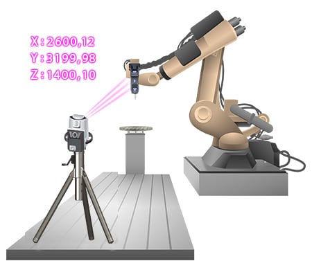 Daher müssen die Trajektorien und Haltepositionen der Roboterhand und der Gelenke eines Industrieroboters gemessen werden.
