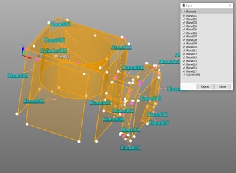 - Gemessene Elemente können als STEP/IGES-Datei exportiert werden. 3D-CAD-Daten können auf der Grundlage der Messergebnisse eines tatsächlichen Produkts erstellt werden, auch wenn keine Zeichnung vorhanden ist.