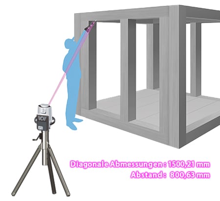 - Ein großer Messbereich bis zu 25 m kann mit hoher Genauigkeit gemessen werden. Die Modellreihe WM ist mit dem Navigationsmessmodus ausgestattet, der die Messung am selben Punkt nach einem gespeicherten Messverfahren ermöglicht, sodass jeder die gleichen Messdaten erhalten kann.