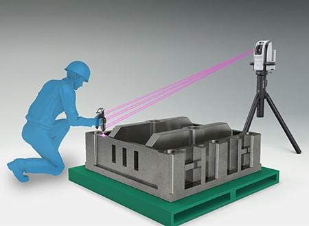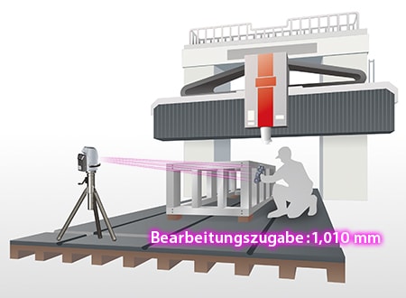Große Vakuumkammern sind etwa 5 m lang, 3 m breit und wiegen etwa 4 Tonnen. Selbst bei großen Vakuumkammern ist in vielen Fällen eine hohe Messgenauigkeit erforderlich. Um die Ebenheit und die Abmessungen der einzelnen Teile genau zu messen, ist ein Portal-Koordinatenmessgerät (KMG) erforderlich. Für die Messung einer großen Vakuumkammer mit einem Portal-Koordinatenmessgerät muss jedoch die Kammer aus der Werkzeugmaschine mühsam entfernt und in den Messraum gebracht werden.