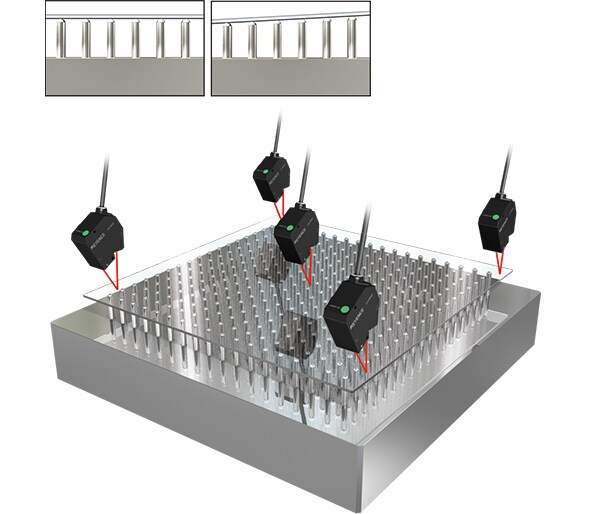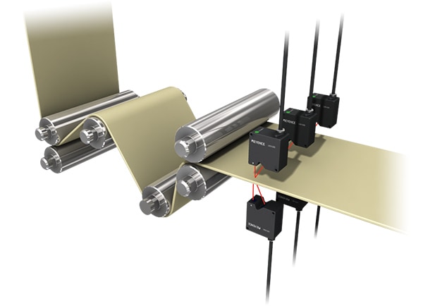 Bei der Dickenmessung ist eine Genauigkeit im Mikrometerbereich erforderlich, um zu bestimmen, ob die Anzahl der Kerne innerhalb des vorgegebenen Bereichs liegt. Die Optik der Laser-Wegmesssensoren der Modellreihe LK verringert den Einfluss der Oberflächenrauheit und ermöglicht mithilfe von selbst entwickelten Komponenten unabhängig vom Messobjekt hochpräzise Messungen.