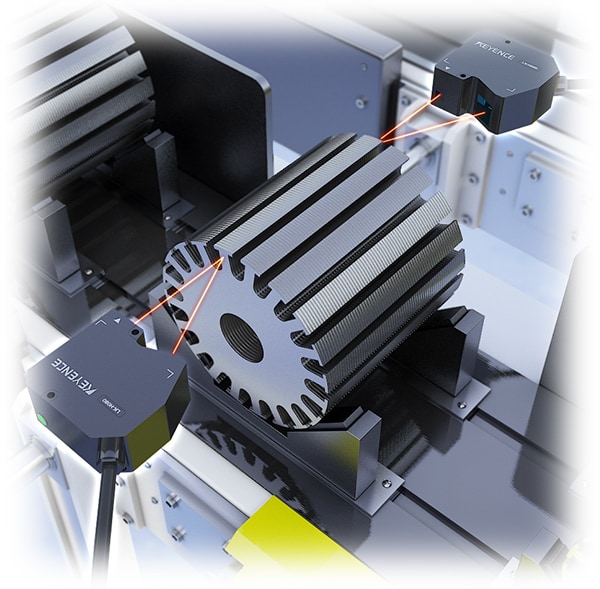 Bei laminierten Wicklungskernen ist die Geräteleistung von der Anzahl der Laminierschichten abhängig. Daher haben wir zunächst per Sichtprüfung kontrolliert, ob die vorgegebene Anzahl Wicklungskernschichten erreicht wurde. Indem wir den Laser-Wegmesssensor der Modellreihe LK von KEYENCE für die Inline-Dickenmessung verwendeten, konnten wir unsere Produkte automatisch überprüfen.