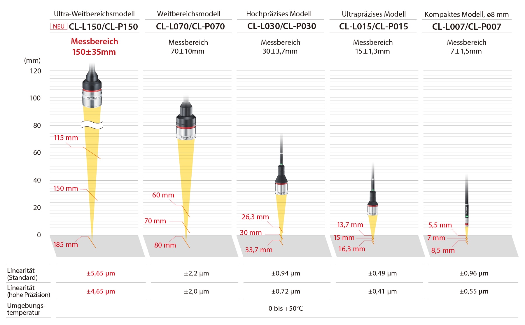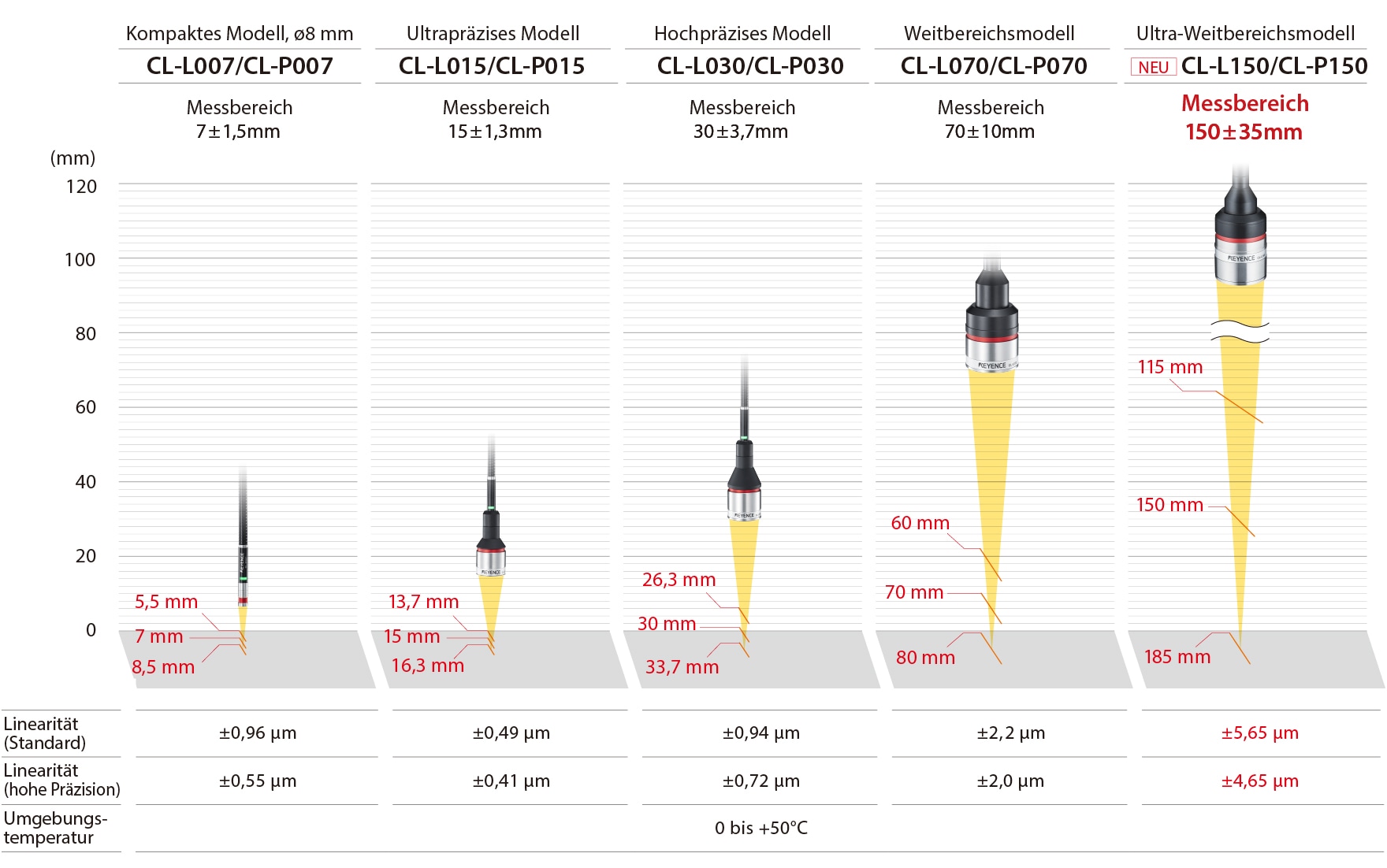 Das athermische optische System der Modellreihe CL-3000 gleicht auch Schwankungen der Umgebungstemperatur aus, um Fehler zu minimieren.